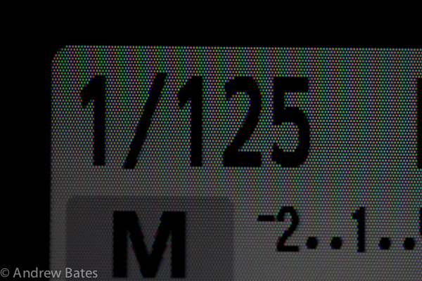 | Shutter | 1/125 | 1/60 | 1/30 | 1/15 | 1/6 | 1/3 | 0.7s | 1s | Shutter | ||